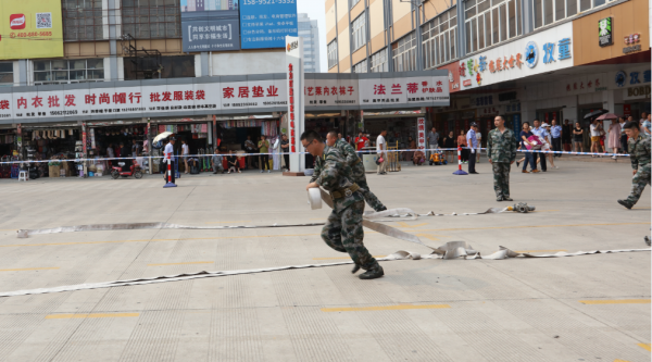 2017年6月28日,宣武集團(tuán)在商貿(mào)城開展消防綜合演練活動(dòng)?;顒?dòng)中,集團(tuán)經(jīng)濟(jì)護(hù)衛(wèi)隊(duì)、市場業(yè)戶、消防隊(duì)進(jìn)行了擒敵拳、班隊(duì)列、消防水帶連接、滅油盆火4個(gè)項(xiàng)目業(yè)務(wù)技能匯報(bào)表演,并與云龍消防大隊(duì)聯(lián)合進(jìn)行了一次滅火和應(yīng)急疏散演練。通過演練,進(jìn)一步提升了職工、業(yè)戶的消防安全意識(shí)和應(yīng)急處置能力。房管局系統(tǒng)、云龍區(qū)相關(guān)領(lǐng)導(dǎo)及駐市場工商、稅務(wù)等領(lǐng)導(dǎo)觀摩演練,并對(duì)演練效果給予高度評(píng)價(jià)。